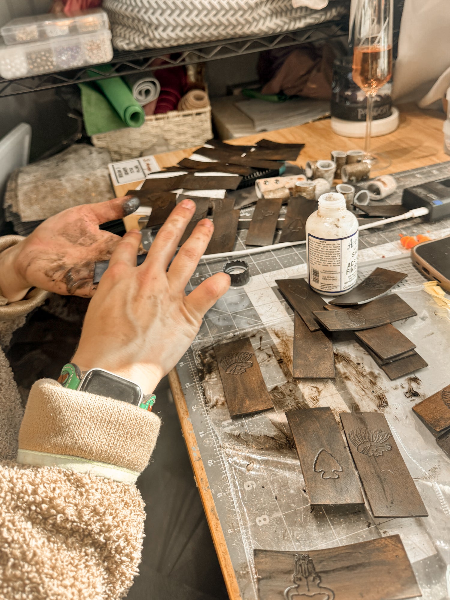 Hand Dyed Bandanas & Cowhide Slides